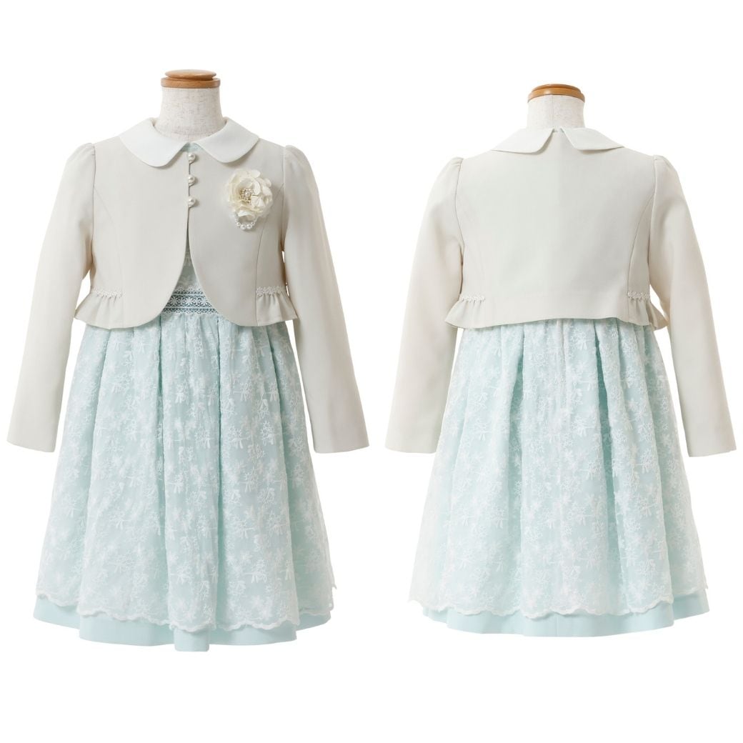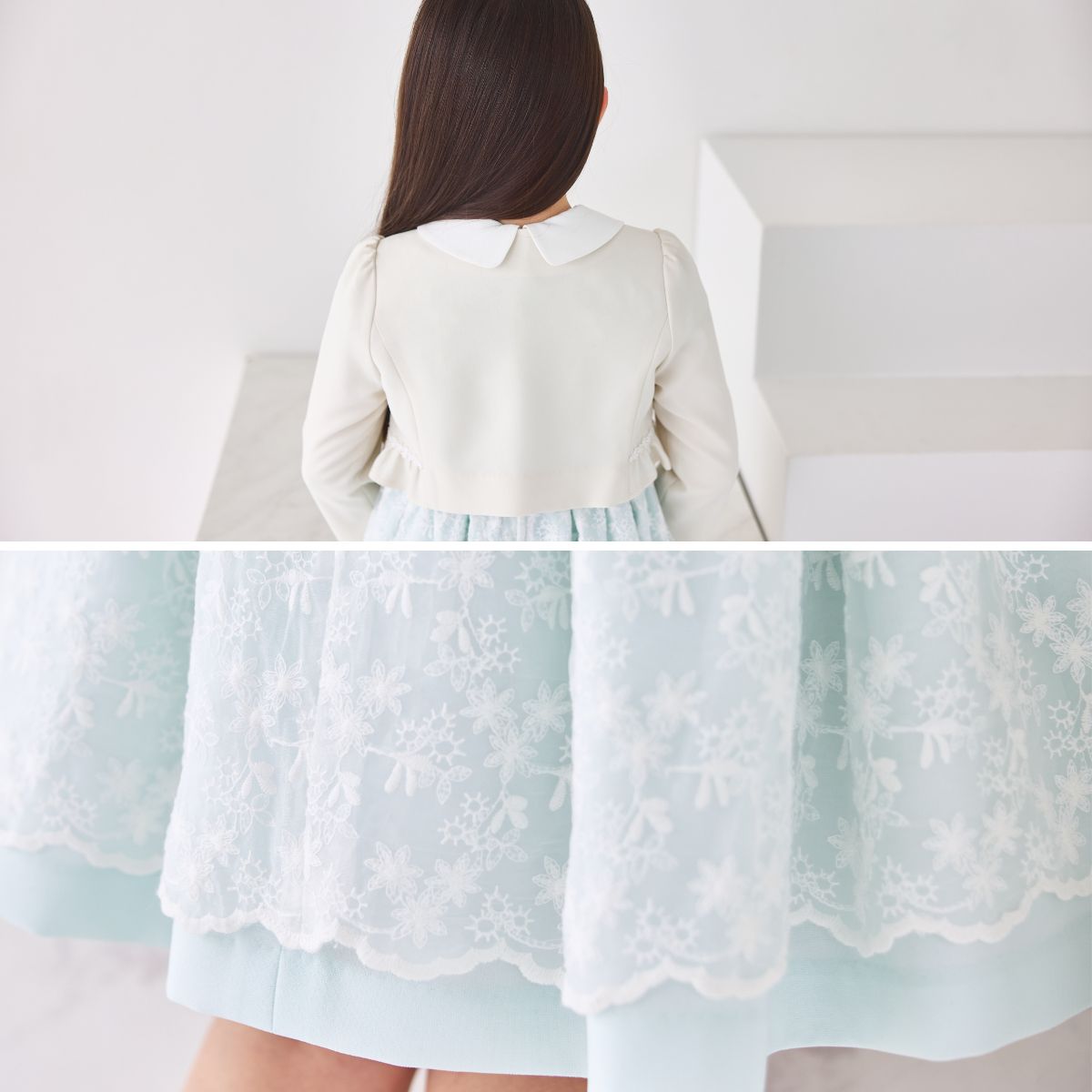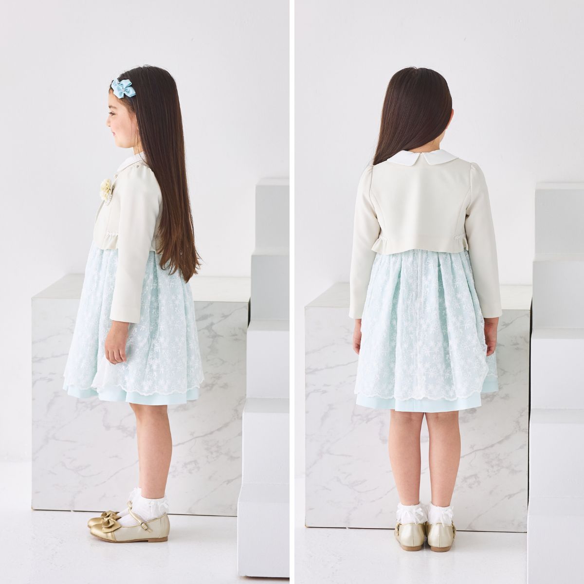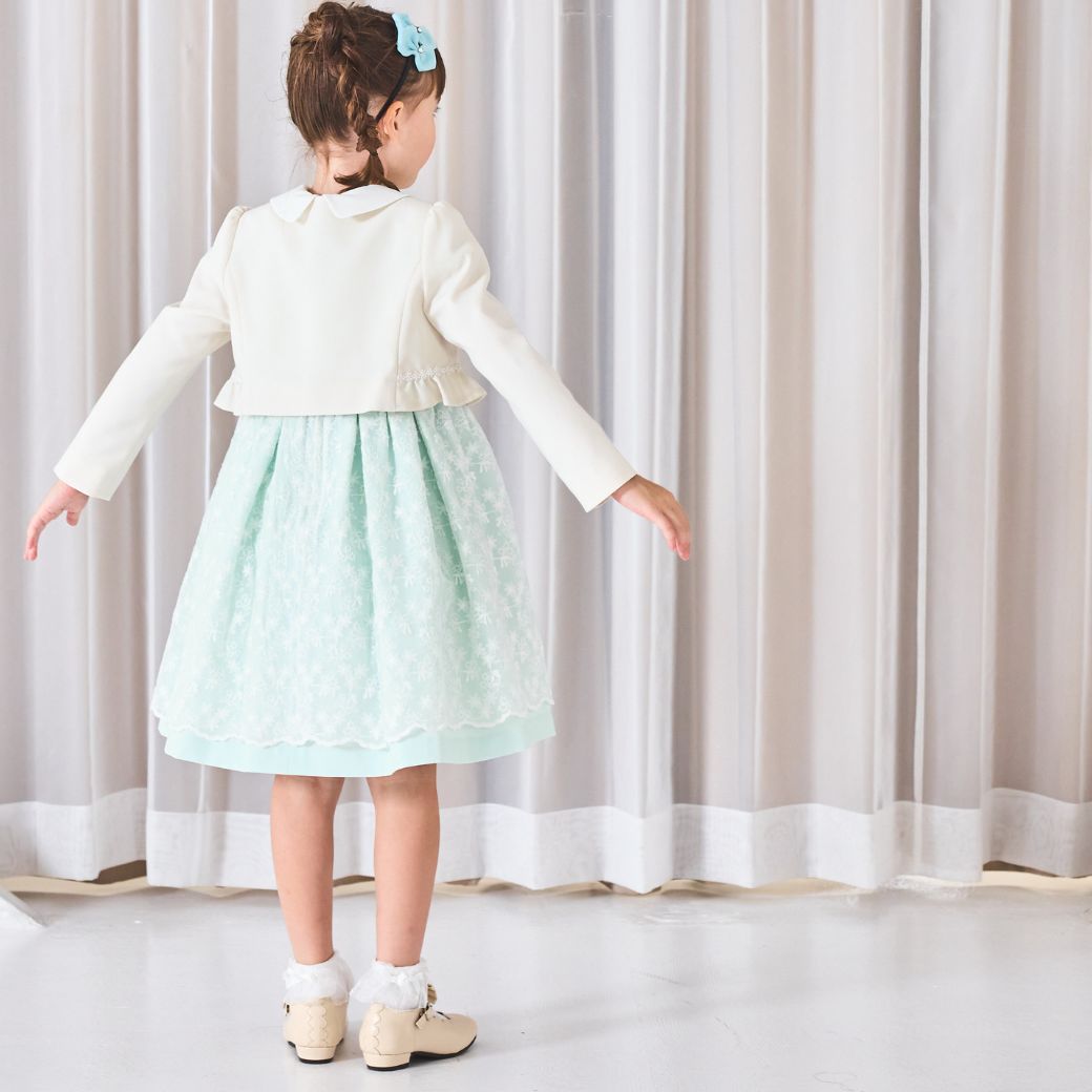 [入学式 フォーマル スーツ 女の子 小学生 幼稚園 卒園式 子供服 ジュニア キッズ 結婚式 発表会 七五三 オケージョン 式典 セレモニー ワンピース ボレロ 刺繍 ミント グリーン 黄緑 CHOPINblue/ショパンブルー]