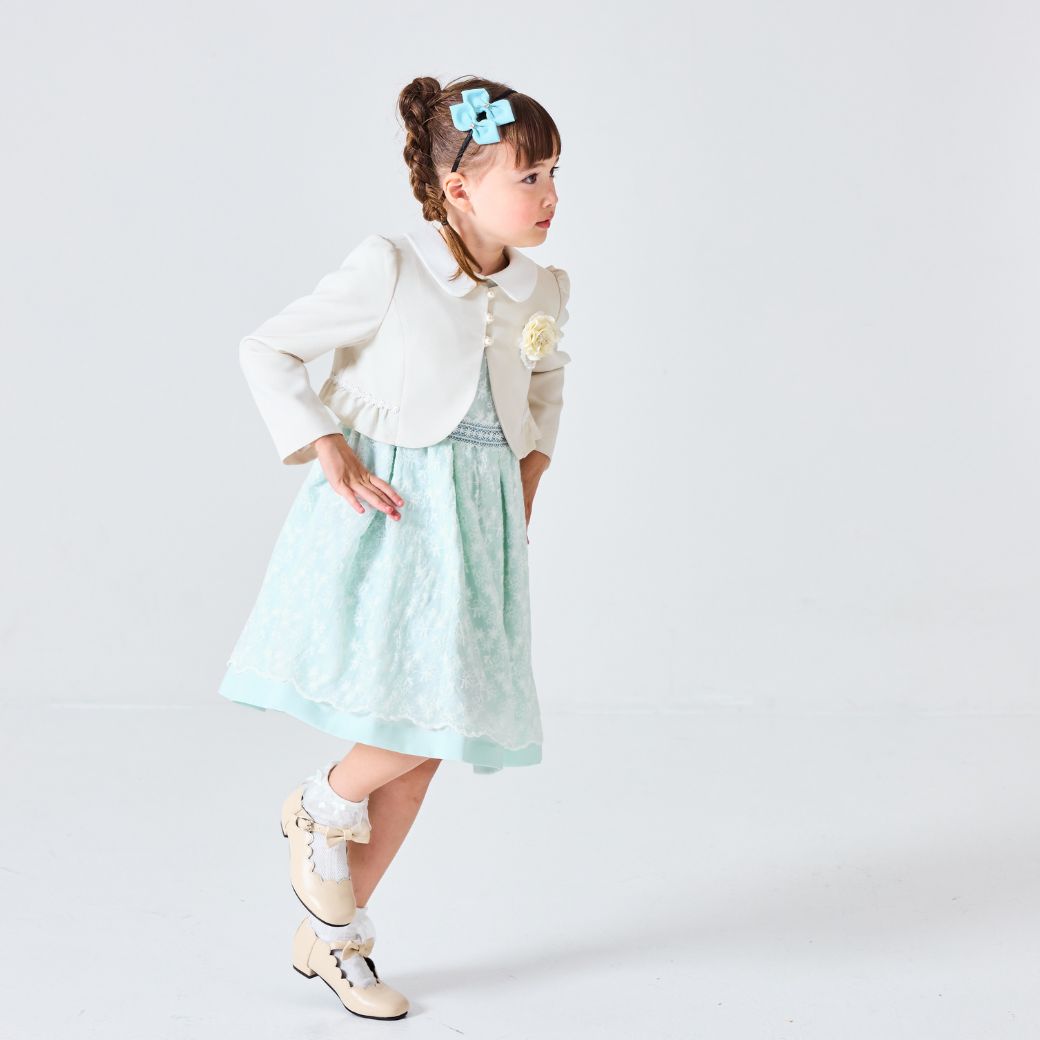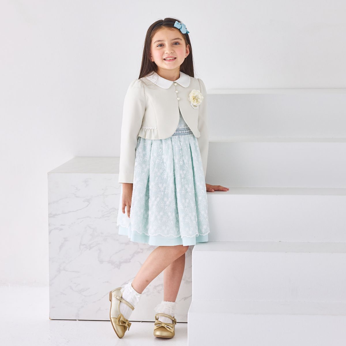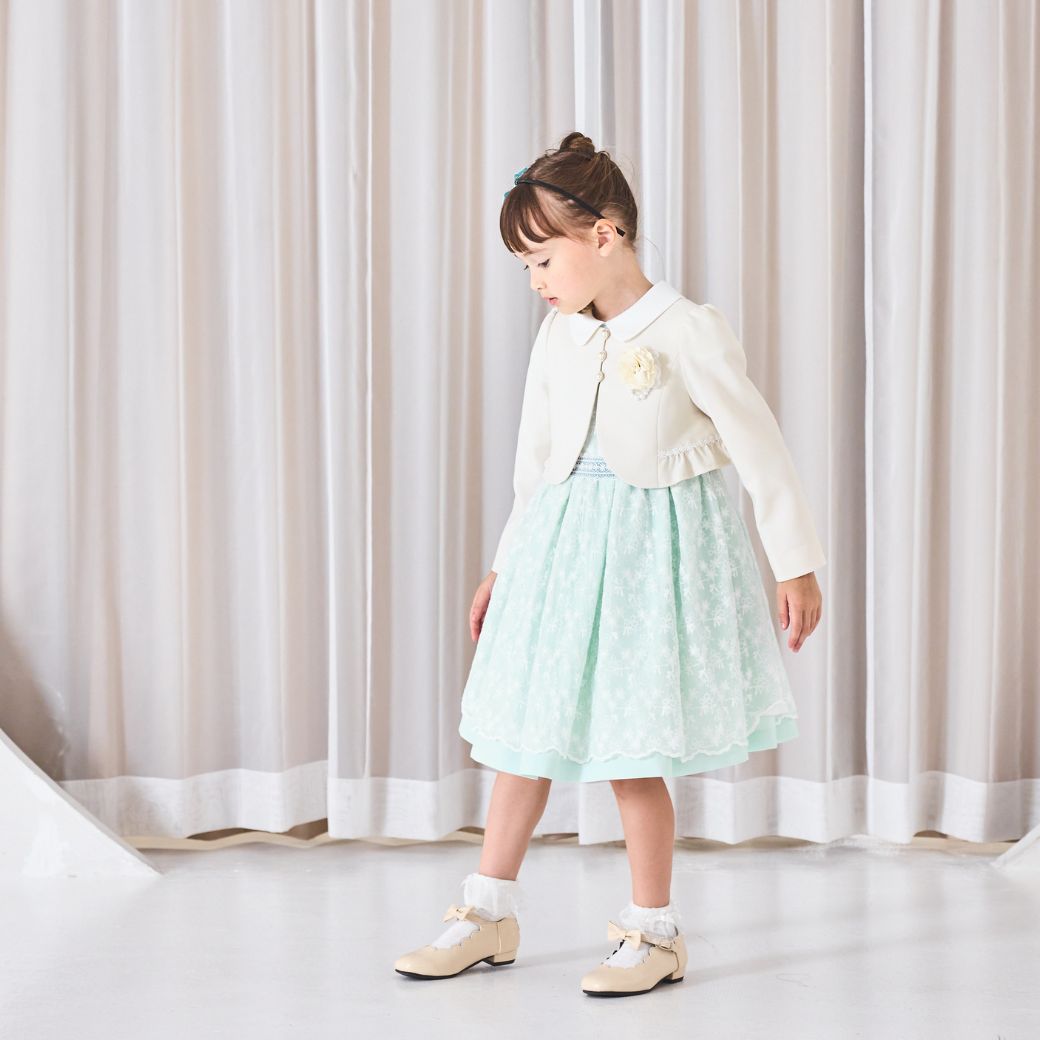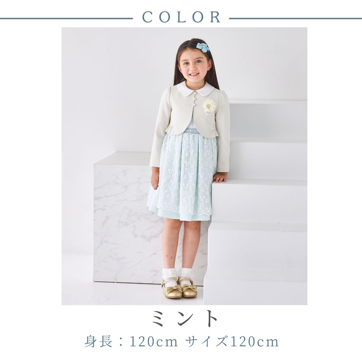 [入学式 フォーマル スーツ 女の子 小学生 幼稚園 卒園式 子供服 ジュニア キッズ 結婚式 発表会 七五三 オケージョン 式典 セレモニー ワンピース ボレロ 刺繍 ミント グリーン 黄緑 CHOPINblue/ショパンブルー]