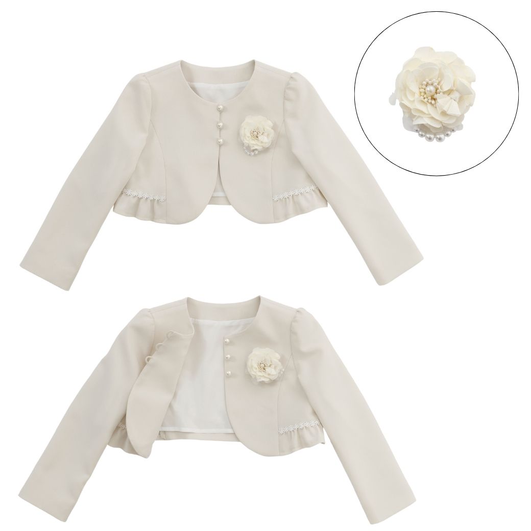 パールの3つボタンが上品なボレロジャケットはプリンセスラインで切り替え華やかなシルエットに。