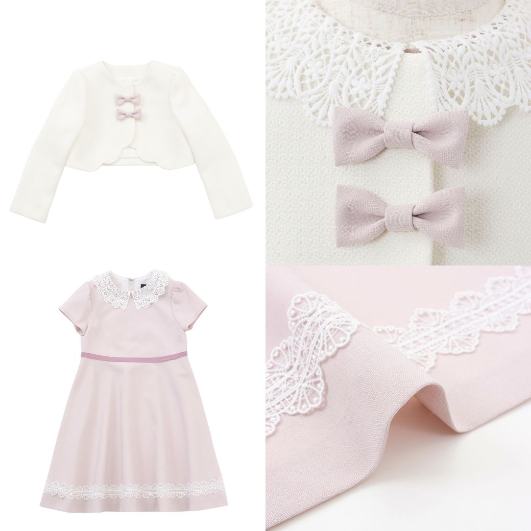 ボレロを脱げばドレスワンピースとしても活躍する、女の子らしくフォーマルな1枚です。