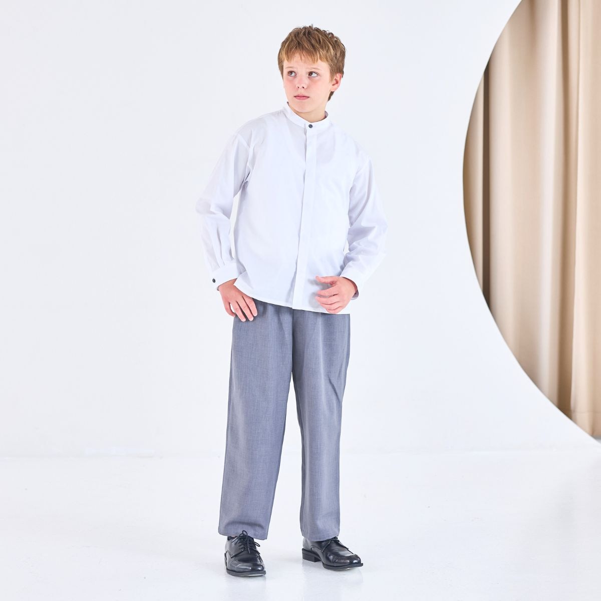 【WEB限定】比翼バンドカラーシャツ 140 150 160 170cm CHOPINblue/ショパンブルー (2573-5652)