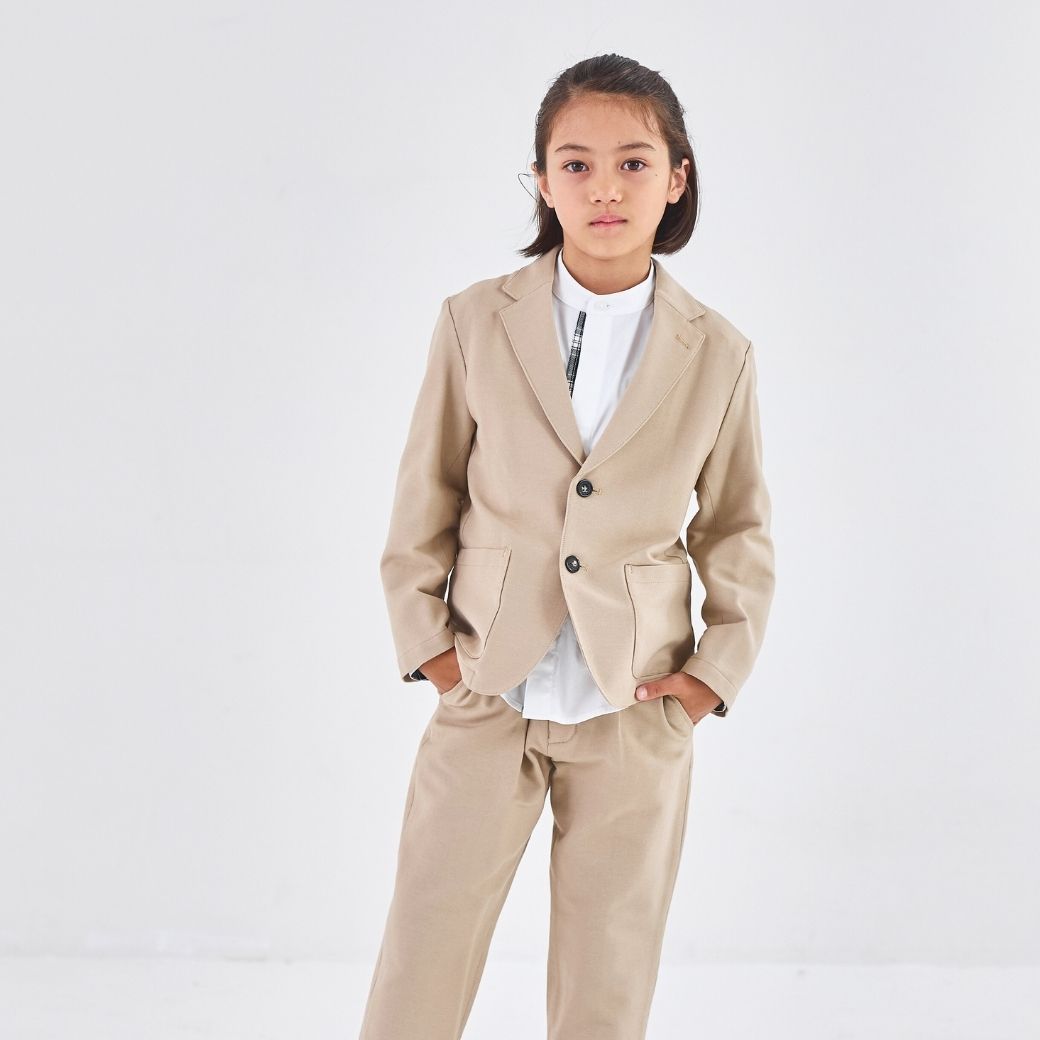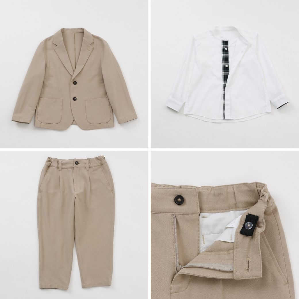 生地が伸びるストレッチ素材を使用し、見た目の上品さと着心地の良さを兼ね備えたカジュアルスーツです。