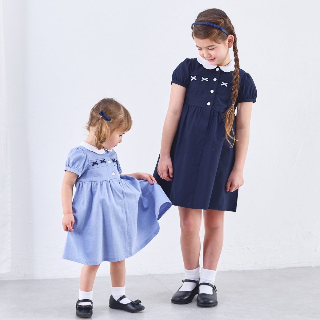 お出かけコーデや学校訪問、通塾、お教室、冠婚葬祭など様々なシーンで活躍するワンピース。