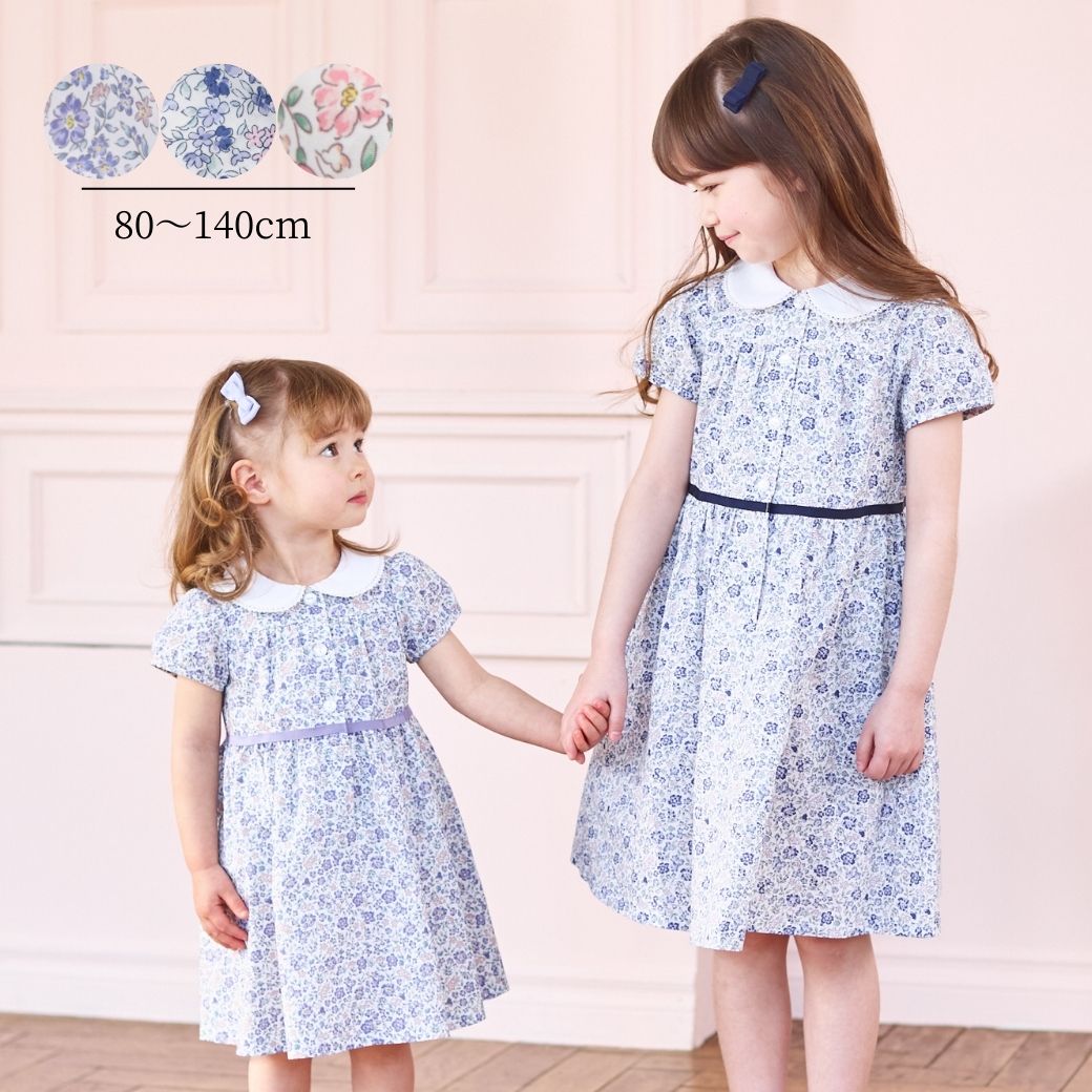 小花プリントワンピース 80 90 100 110 120 130 140cm (2536-7101/2536-7301) CHOPINblue/ショパンブルー