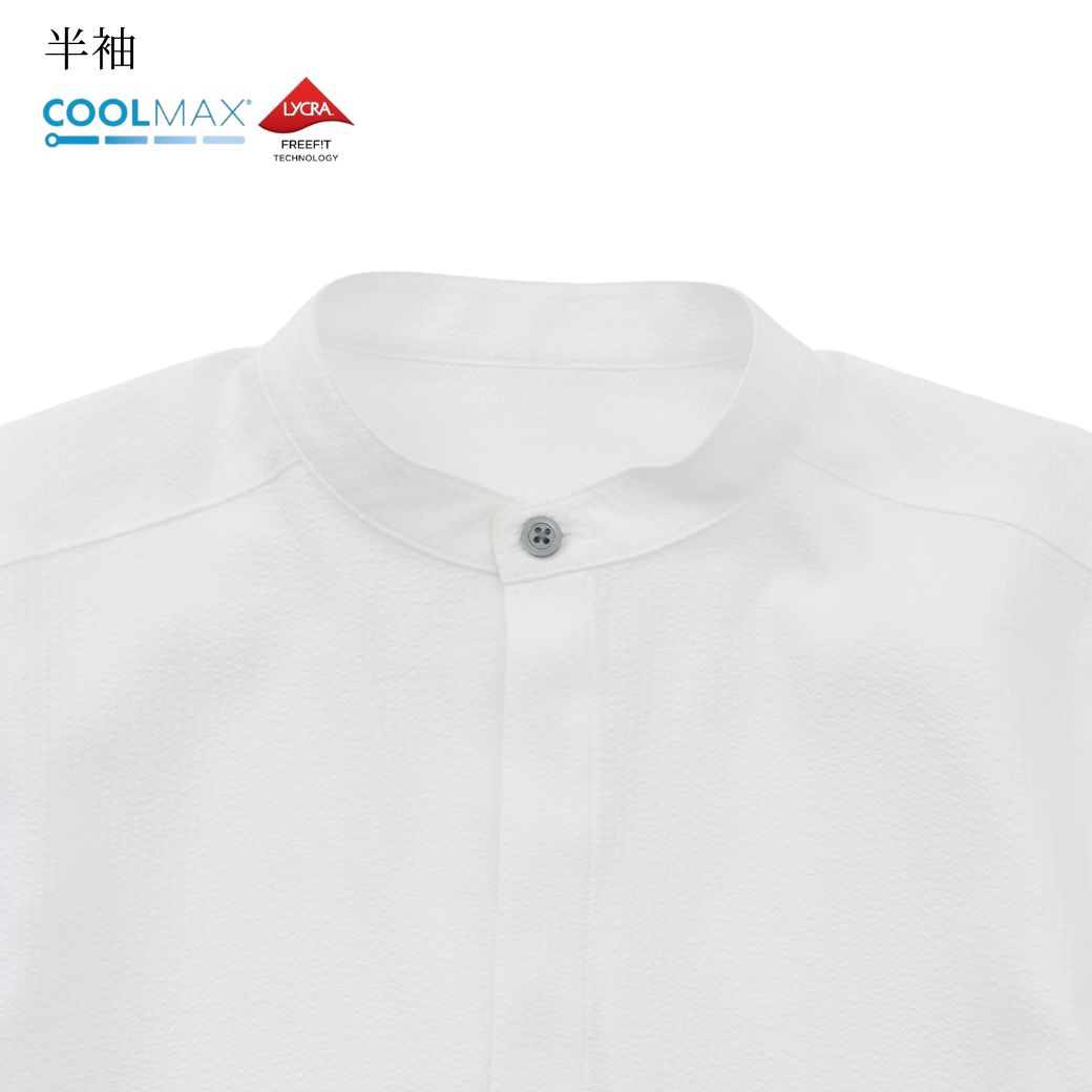 【半袖シャツ(COOL MAX)をご希望の方は再入荷ボタンを押してください。】大人っぽく洗練された印象のバンドカラーシャツ