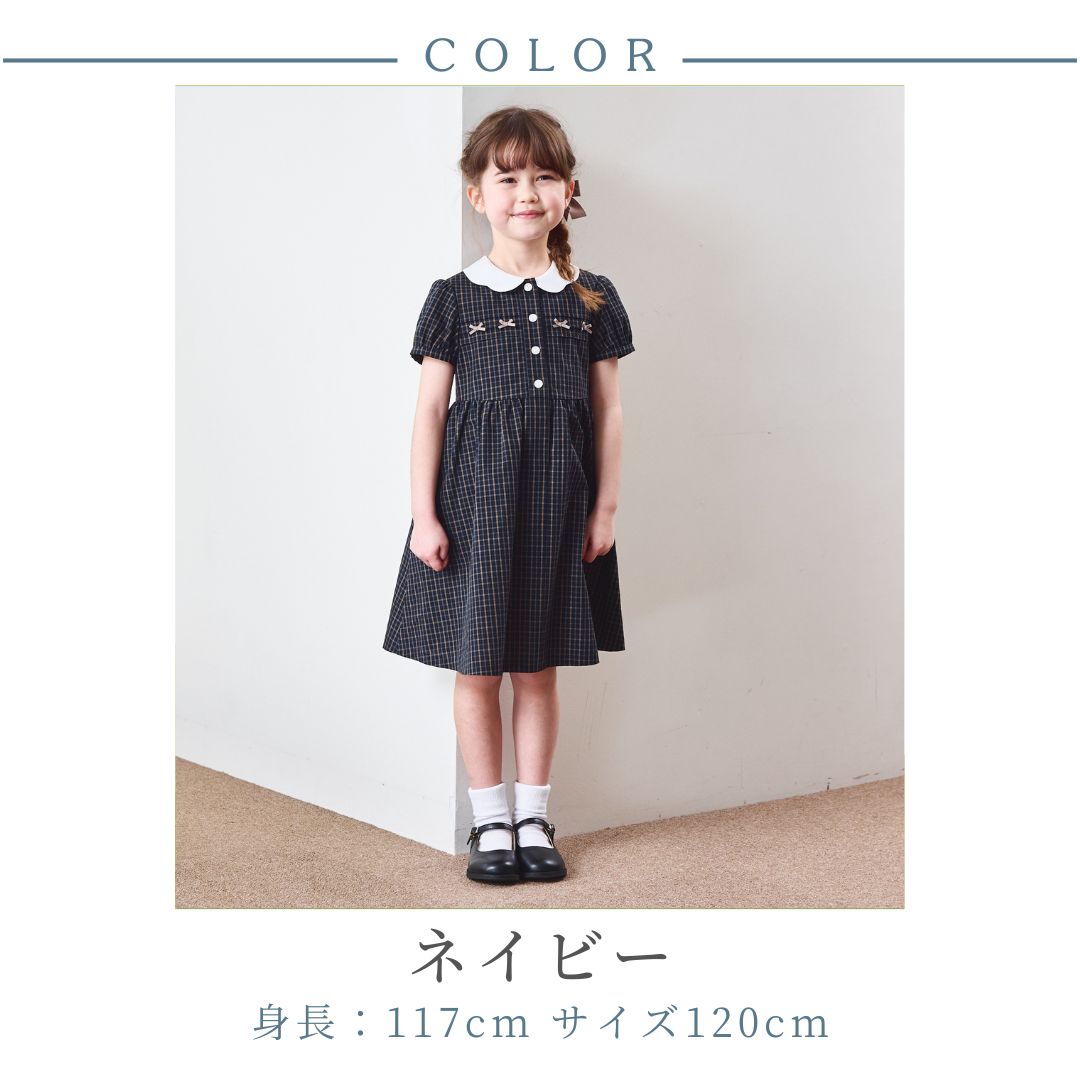 ダークチェックミニリボンワンピース 110 120 130cm (2636-7346) CHOPIN blue/ショパンブルー
