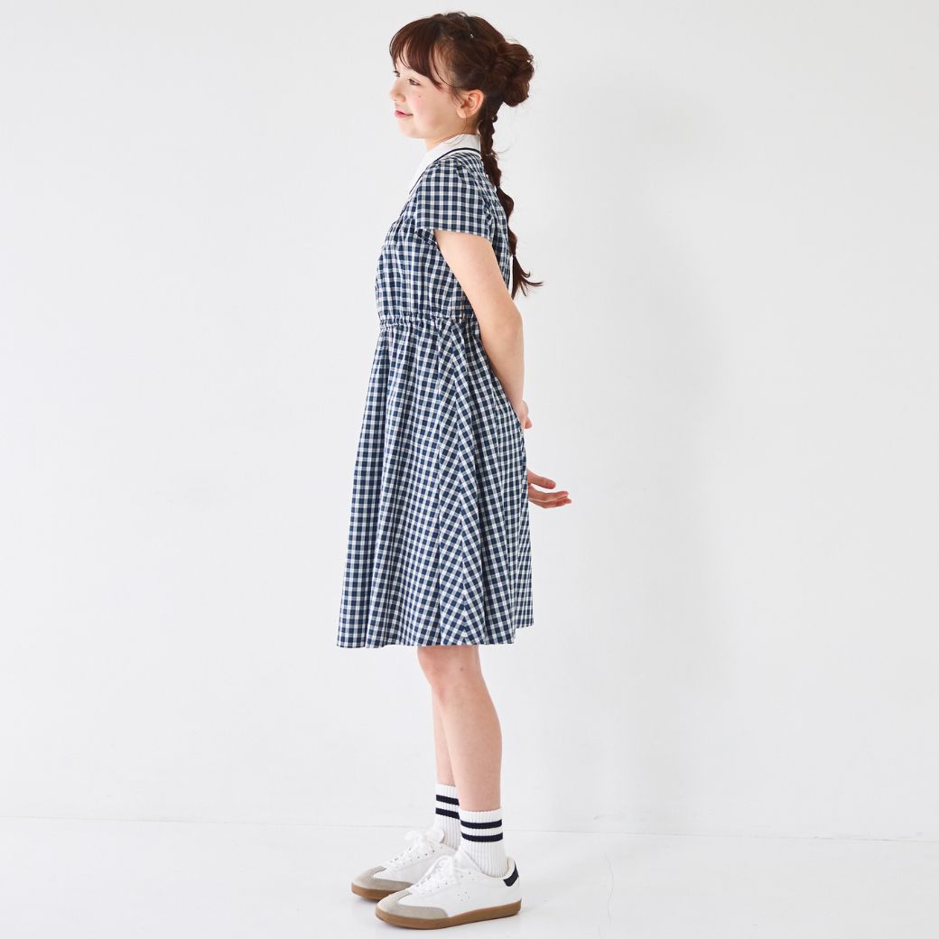 トレンドのミニチェックとワッペンがプレッピーライクなワンピース