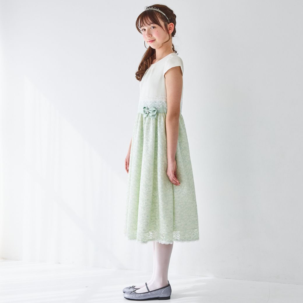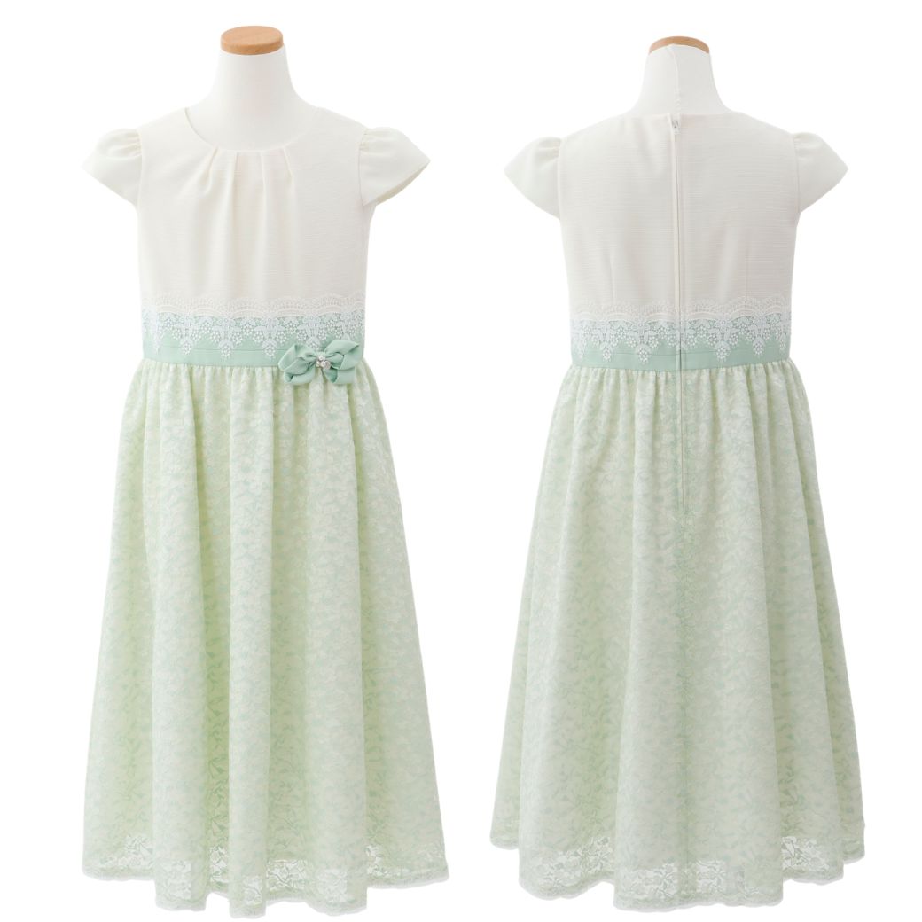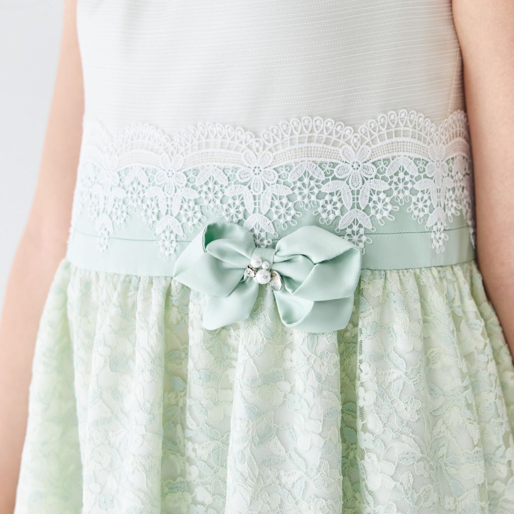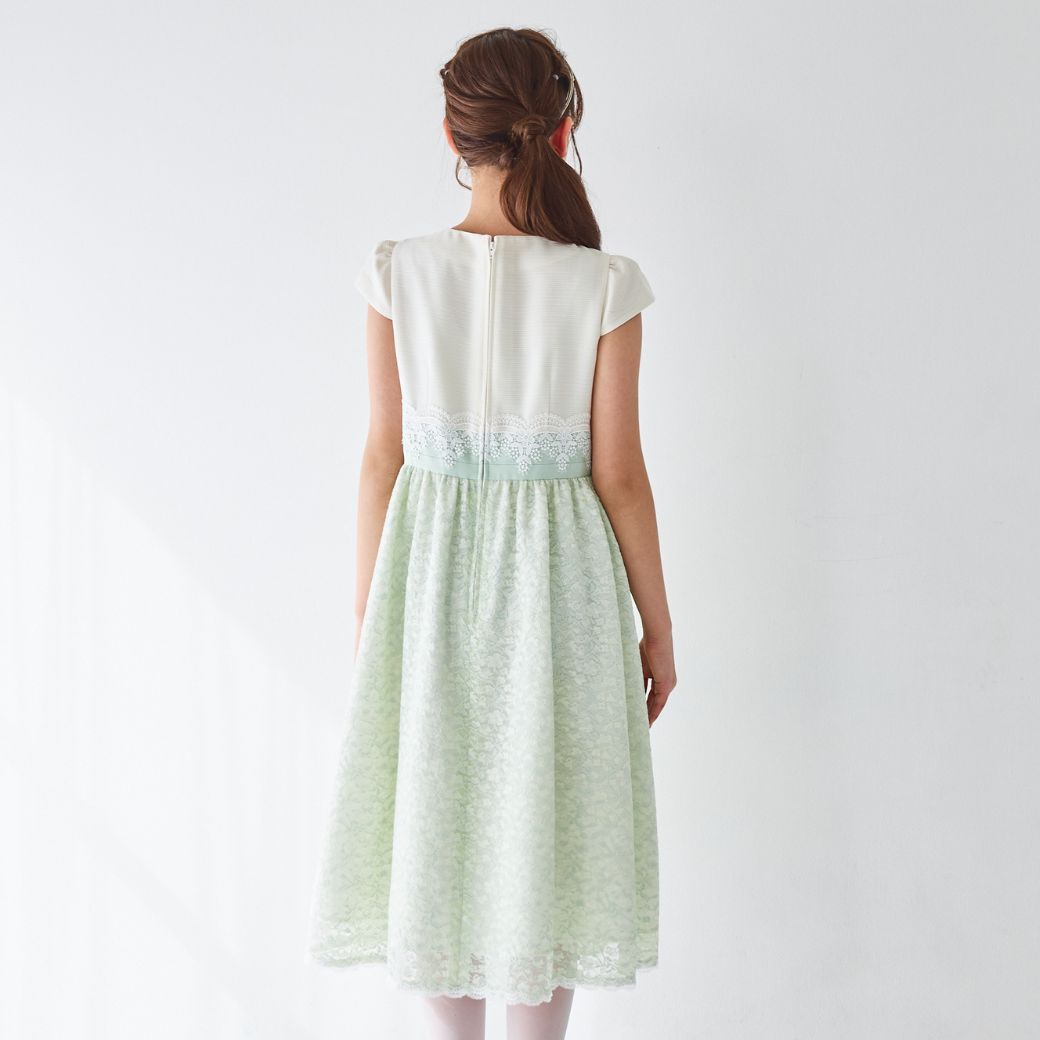 ミントカラーのさりげない濃淡が品格を感じさせるシアーレースコンビドレス