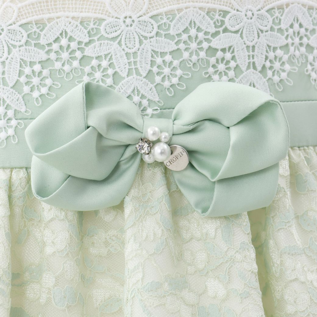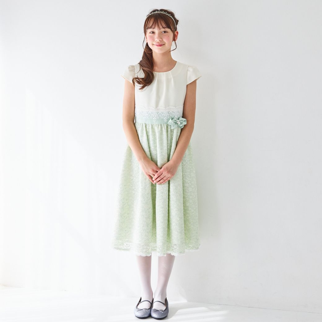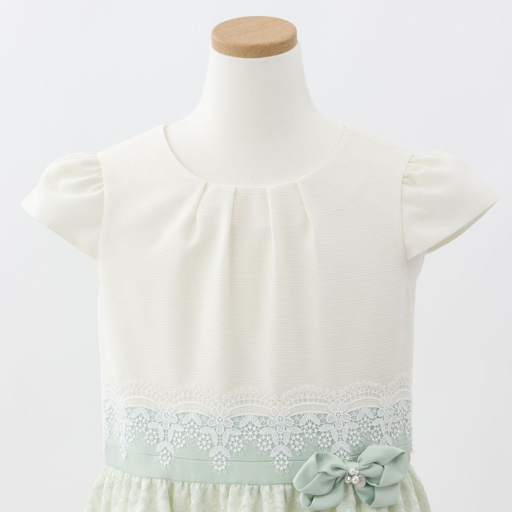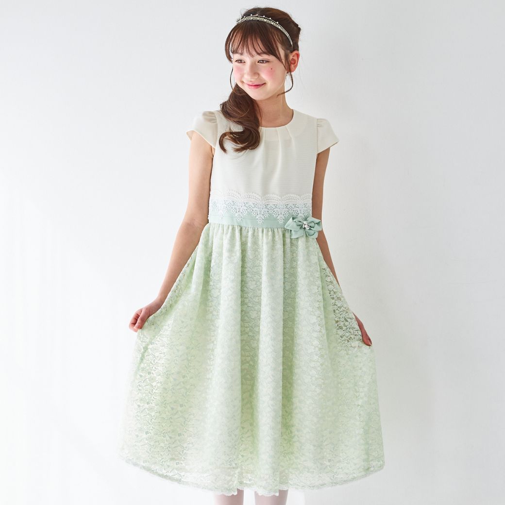ミントカラーのさりげない濃淡が品格を感じさせるシアーレースコンビドレス