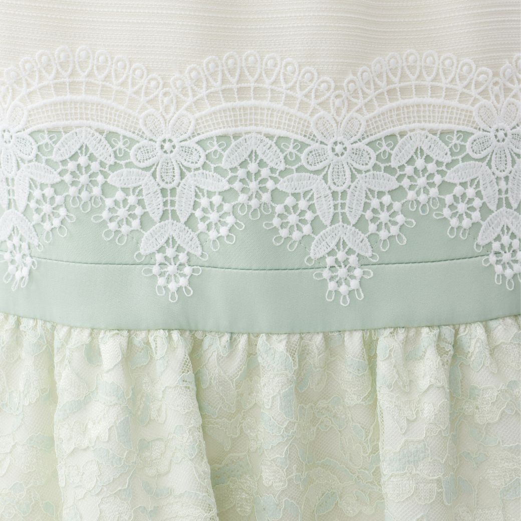 スカート部分は繊細なボタニカルフラワーモチーフのバイカラーレース。