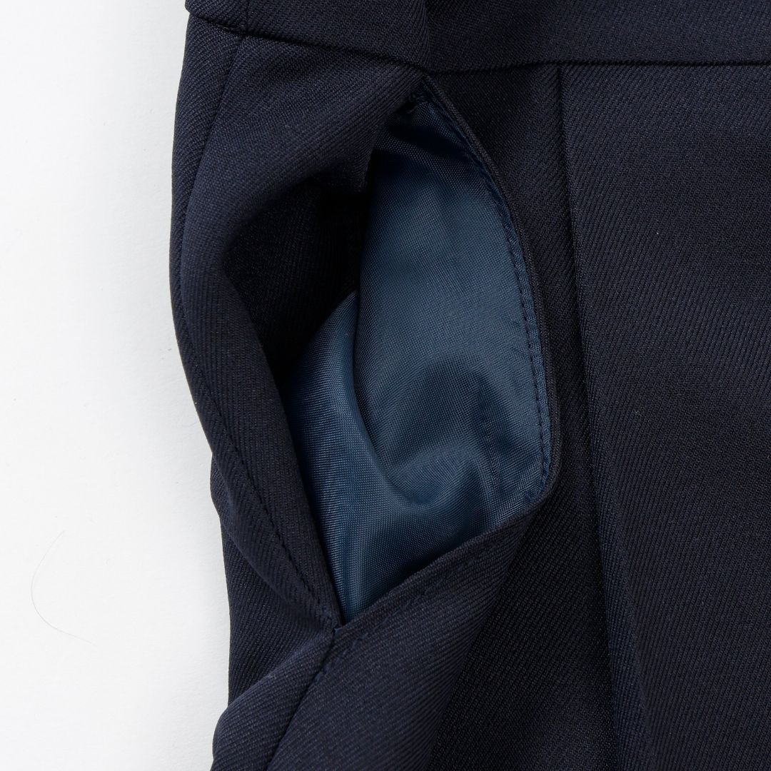 スカート部分は座った時にもきちんとした印象を保つようプリーツ幅を追及し、ポケットはハンカチの出し入れがしやすい斜めのデザインにしました。